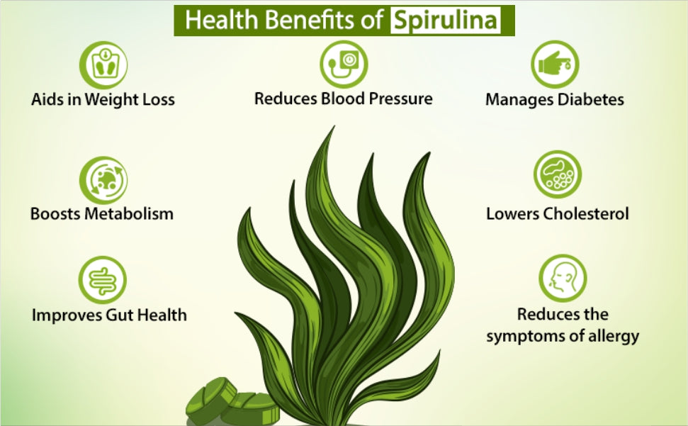 Promotes Weight Loss: Spirulina can aid in weight loss by reducing appetite and promoting healthy metabolism.