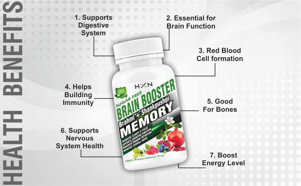 This formulation combines the potency of seven different herbs to help relax the mind and boost attention and learning abilities. Our adult and student brain booster pill combine 12 brain-boosting components to improve short-term cognitive function and long-term brain health. With our Brahmi memory tablets, you can re-energize your mind.