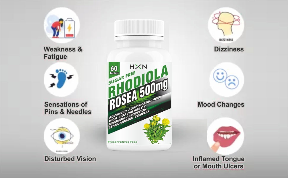 Boosts Energy Levels: Rhodiola rosea can increase energy levels, reducing fatigue and enhancing physical and mental performance.