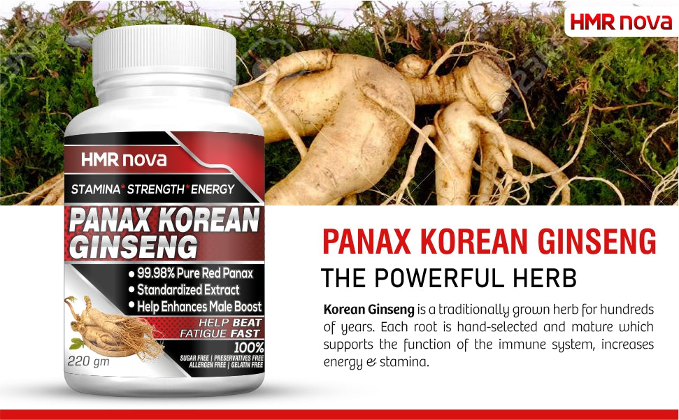 - Panax Korean Red Ginseng Standardized Organic Root Extract With Ginkgo Biloba, And Bioperine As Dietary Supplement To Boost Energy- 220 GM