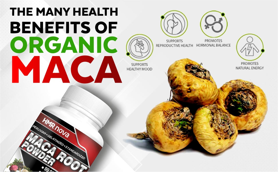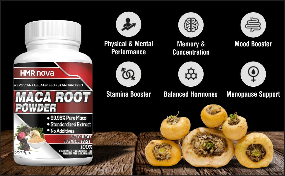 Hormonal Balance: Maca root can help to balance hormones in both men and women, making it a popular supplement for people with hormonal imbalances, menstrual irregularities, and symptoms of menopause.