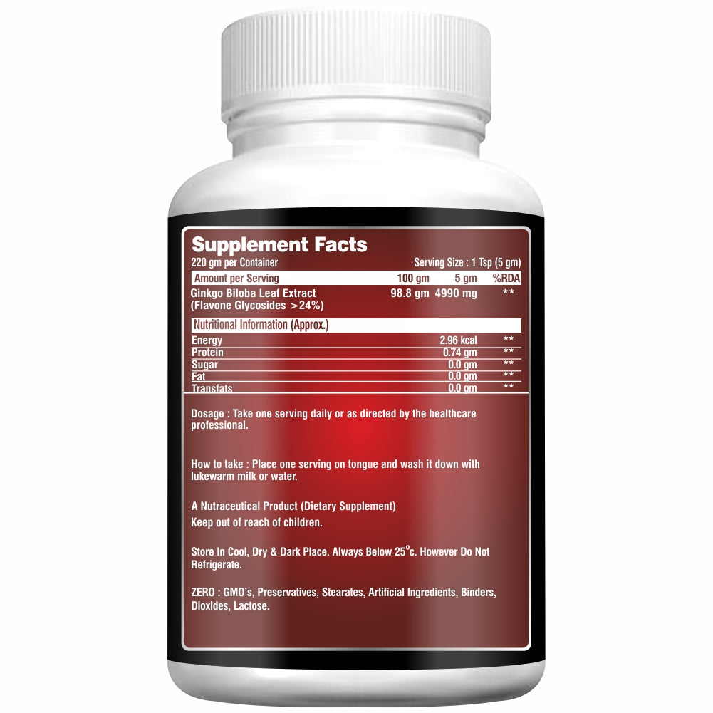 • BRAIN FUNCTION + CIRCULATION: Ginkgo Biloba is a powerful standaridzed leafextract that has been shown to support healthy memory, focus, and circulation. Ginkgo is said to help enhance blood flow and oxygen to the brain to support cognitive health