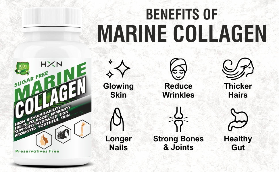 Strengthens Hair and Nails: Marine collagen can help strengthen hair and nails, reducing breakage, and improving overall health and appearance.