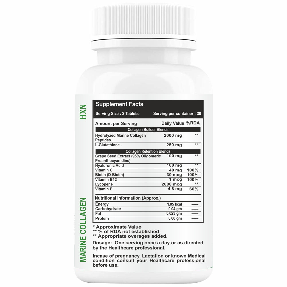 - With Hyaluronic Acid, Vitamin C, E, B12 Supplements, Glutathione, Biotin, Lycopene, Grape Seed Extract -120 Tablets