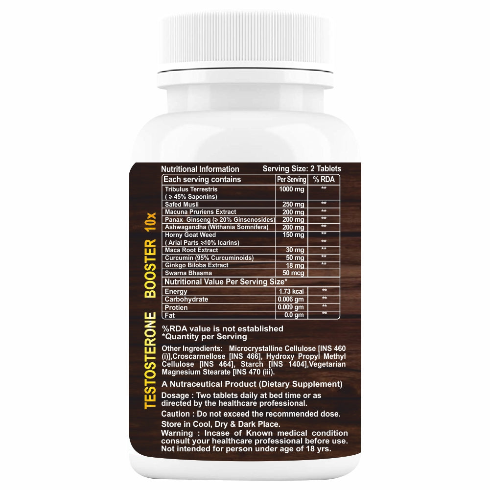 • FIT ENERGETIC AND GOOD HEALTH: In today’s speedy life style to pump up with required energy boost the product comes with goodness of 10 highly potent energy booster for men ingredients with advantage of gold bhasma that helps you to remain energetic all day. A Natural Testosterone Booster For Men