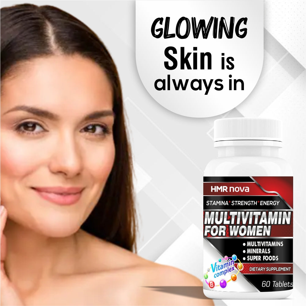 HMR Nova Women Multivitamin & Multimineral Supplement Tablets is specially formulated for fulfilling women's daily health needs.It provide B -complex(vitamin B1,B2,B3,B5),Vit C,B12,D,E and minerals like Calcium,zinc,magnesium and iron to maintain health and fitness. One bottle with 60 tablets. Take one per day.