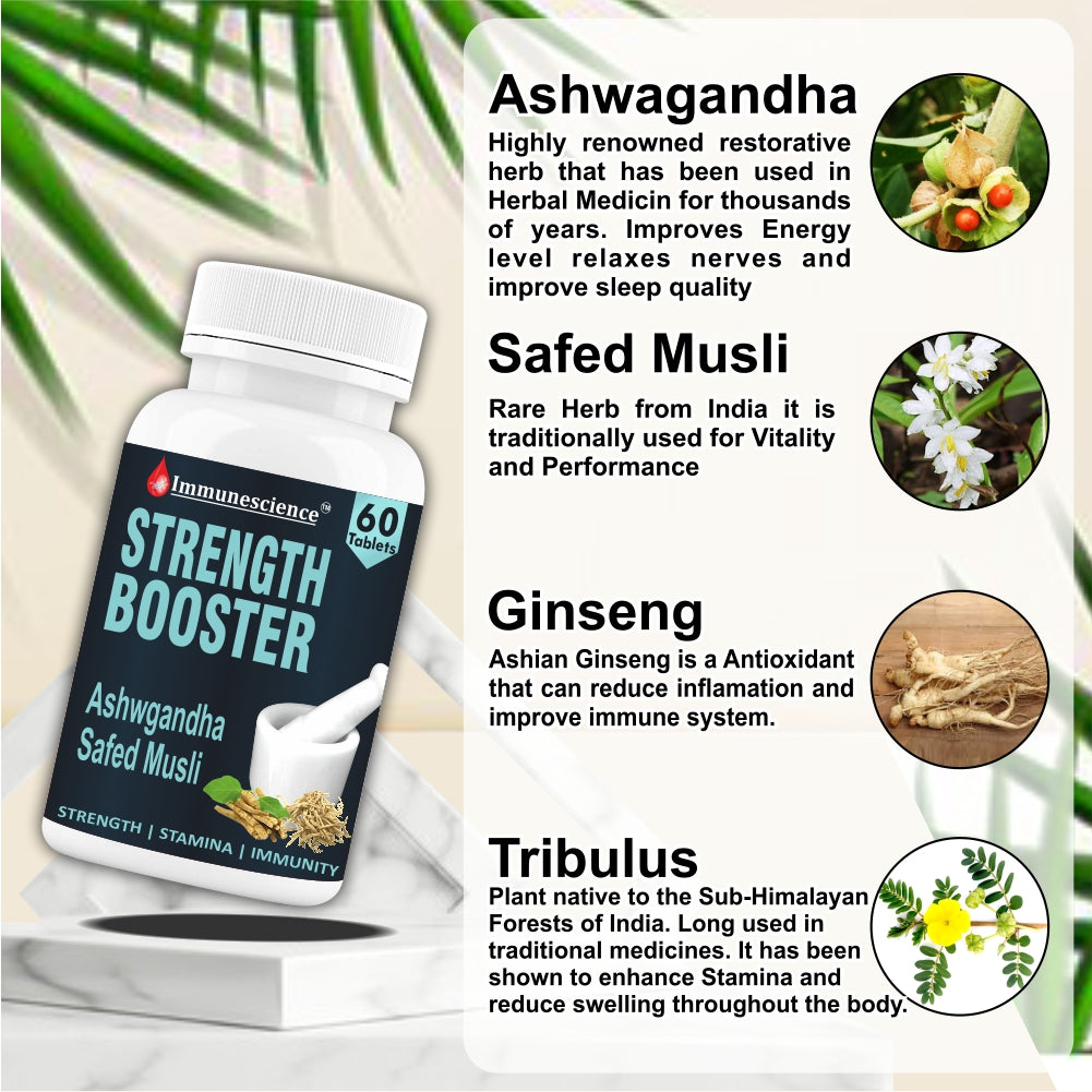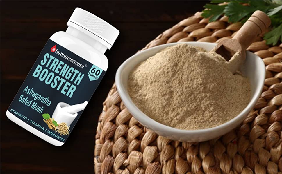 GOODNESS OF MANY INGREDIENTS::Cortisol levels are reduced by Ashwagandha. Reduce anxiety and stress. Increases testosterone boosters. Muscle mass and strength should be increased. Is a stimulant pain reliever. Safed Musli is an anti-inflammatory, pain-relieving, and stress-relieving herb. Ginseng boosts energy, enhances cognitive function and focus, and helps control blood sugar levels